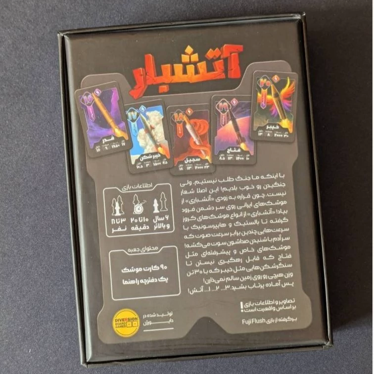 بازی فکری آتشبار یک بازی کارتی جذاب و سریع و مناسب برای دورهمی های دوستانه و خانوادگی است که با الهام از جنگ 12 روزه طراحی و تولید شده است. در این بازی موشک های ایرانی با اطلاعات واقعی و تصاویر دقیق روی کارت های بازی نقش بسته اند. در بازی آتشبار، شما فرمانده یک زرادخانه موشکی هستید! هرکارت در دستتان یک موشک آماده شلیک است که میخواهید آن را در میدان نبرد آزمایش کنید. حالا تمام بازیکنان موشک های خود را شلیک میکنند تا با هم رقابت کنند و یا حتی در اتحادی چند نفره عملیات موشکی ترکیبی اجرا کنند تا ببینند کدام موشک برای نابودی دشمن مؤثرتر است.