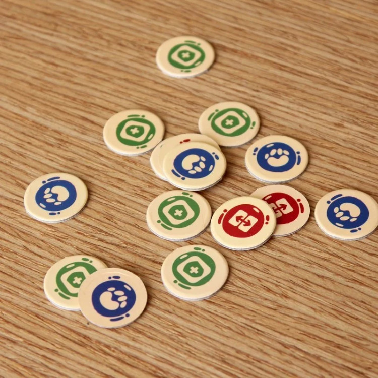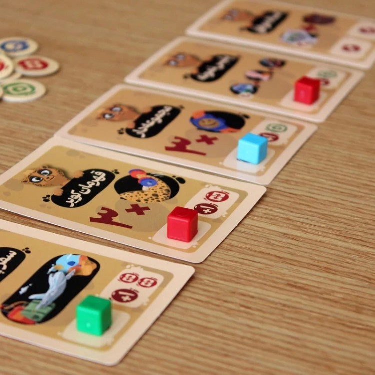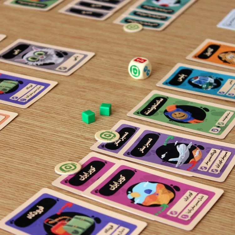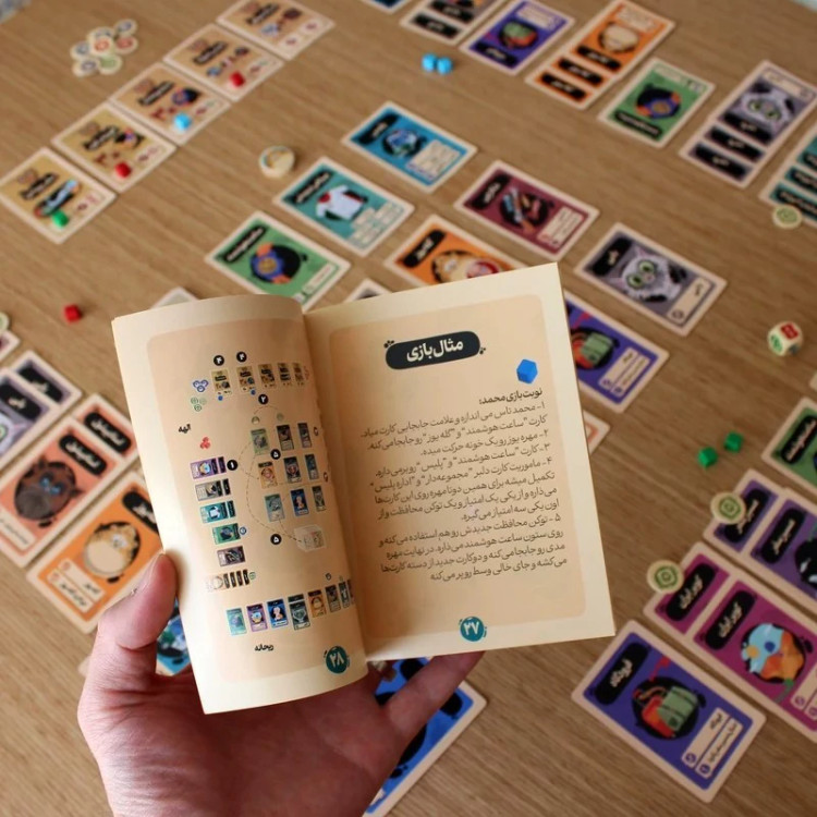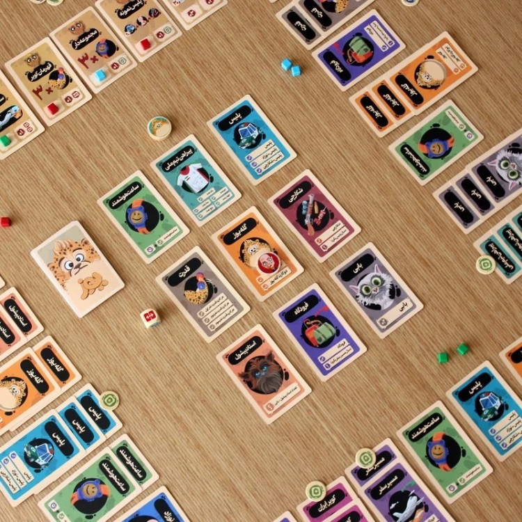 اقلام همراه: 60 کارت بازی - 4 کارت راهنما - 1 تاس - 12 مهره در چهار رنگ - 20 توکن در سه طرح - 1 دفترچه راهنما - 2 مهره چوبی مدی و یوز