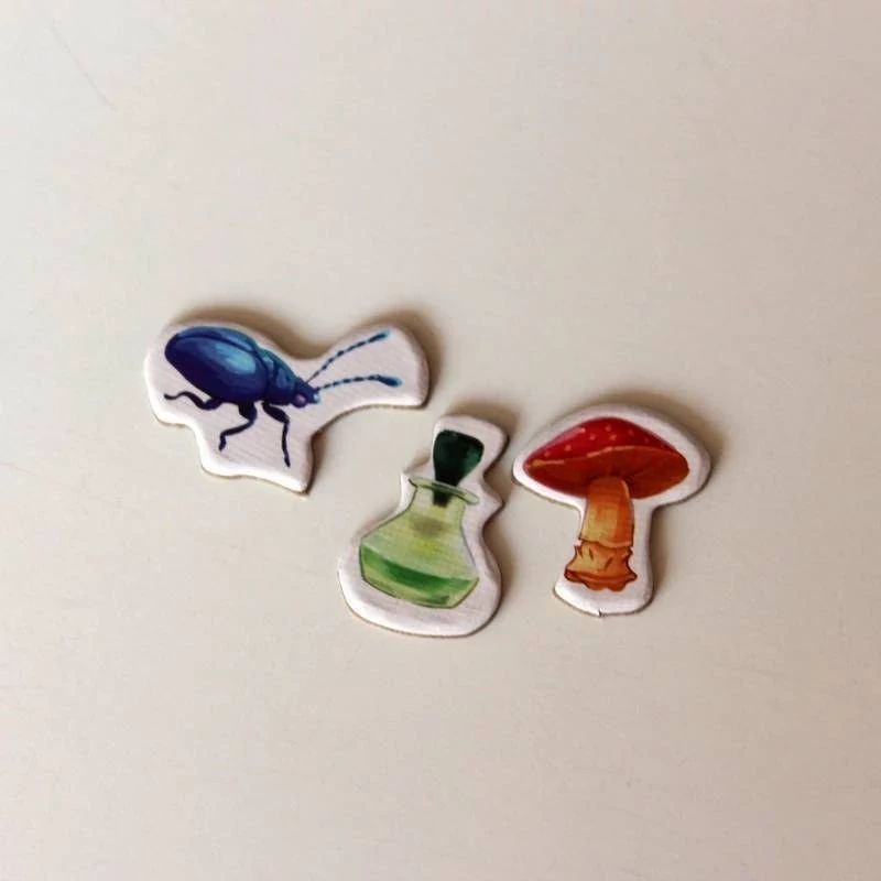 اقلام همراه: 1 عدد بطری - 1 عدد بارکد فیلم آموزشی - 14 عدد ژتون سوسک - 14 عدد ژتون قارچ - 14 عدد ژتون بطری آزمایش - 3 عدد تاس