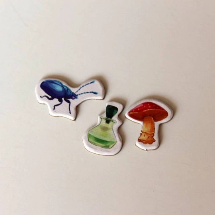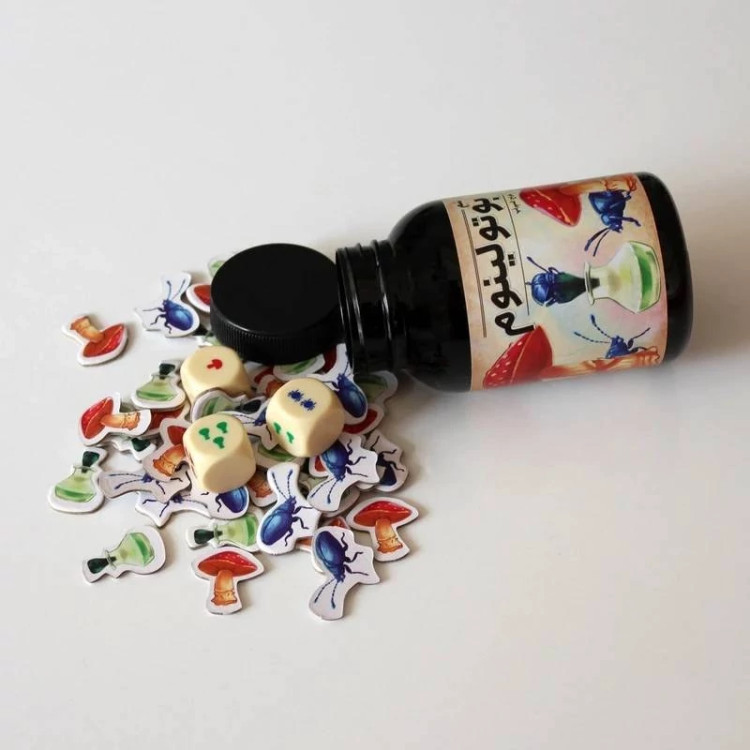 اقلام همراه: 1 عدد بطری - 1 عدد بارکد فیلم آموزشی - 14 عدد ژتون سوسک - 14 عدد ژتون قارچ - 14 عدد ژتون بطری آزمایش - 3 عدد تاس